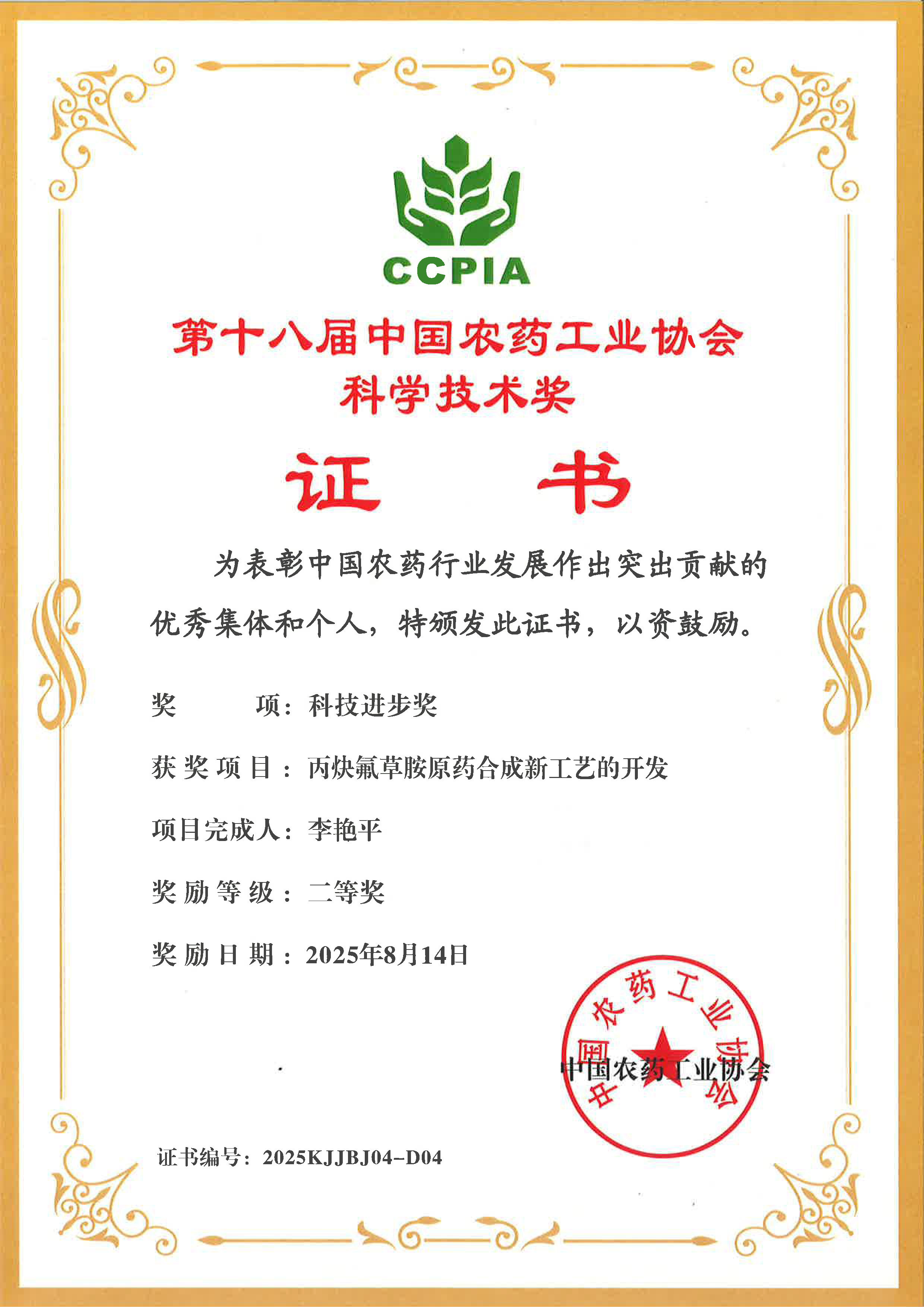 ■2025-08-09 濱農(nóng)科技獲山東省農(nóng)藥行業(yè)安全生產(chǎn)知識(shí)競(jìng)賽“優(yōu)秀組織獎(jiǎng)”